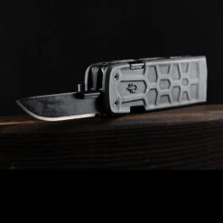 With an innovative design that shields the cutting edge, the Gerber Strap Cutter serves its purpose in emergency situations. The 420HC steel hook knife cuts through anything, the molded rubber grip and finger hole add stability, and a glass breaker wastes no time.