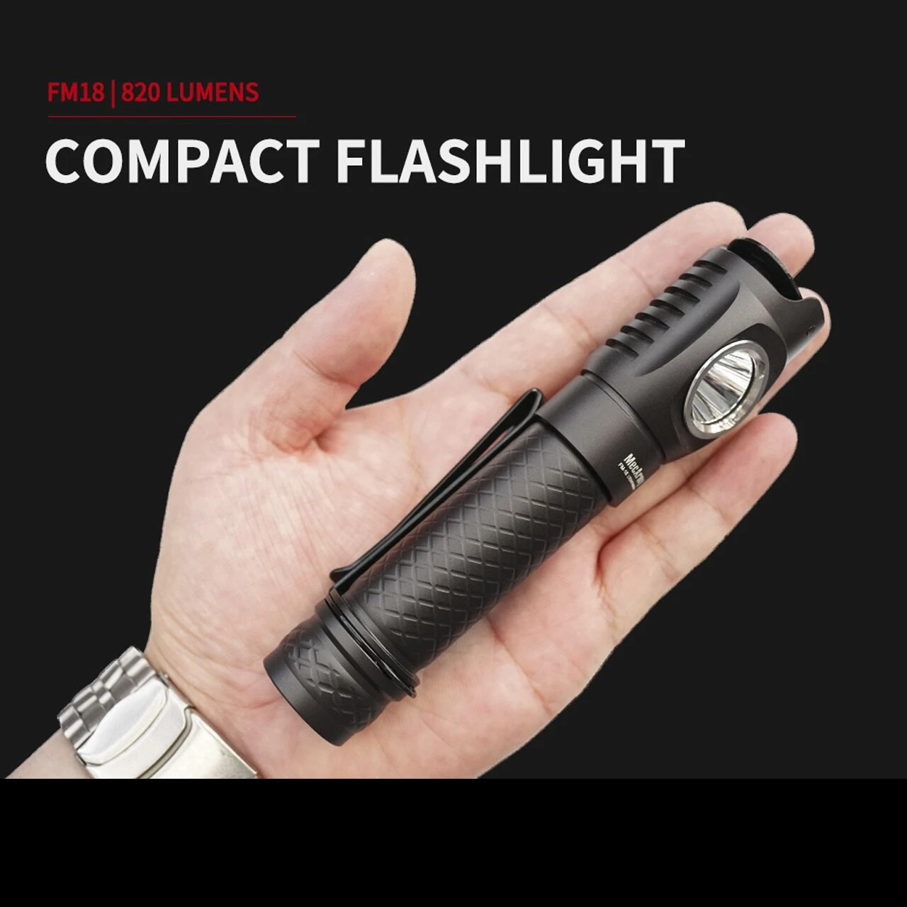 The Mecarmy FM series lights are equipped with CREE XPL-HI LEDs delivering high lumen levels and constructed from aero grade HAIII aluminium alloy. The MecArmy FM18 blasts out 820 lumens in a standing out the front design. It features a pocket clip and magnetic tail cap making carry and work easier and more convenient. Charging is easy on the go, thanks to the built-in standard Micro USB charging port with only a cable on any USB power devices. FM18 is powered by 18650 Li-ion battery.